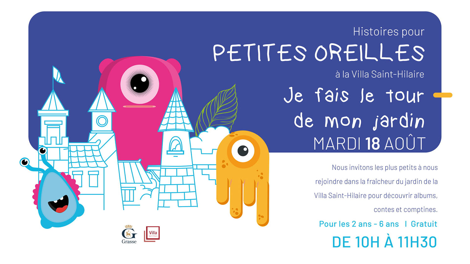 Nous invitons les plus petits à nous rejoindre dans la fraîcheur du jardin de la Villa Saint-Hilaire pour découvrir albums, contes et comptines.